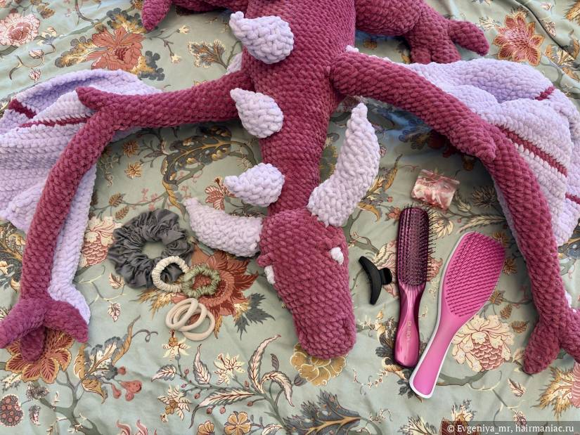 Список волосяных аксессуаров поредел, я бы сказала) Я исключила все шёлковые вещи, никаких больше колпаков, наволочек, и чехлов. Всё это в долгосрочном применении ещё сильнее выглаживает мои волосы, чего мне совсем не нужно. Осталось несколько шёлковых резинок, но и их ношу редко, удобнее обычные мягкие и потерять не так жалко. Крабы ношу мало, только в ванную, от них болит голова.