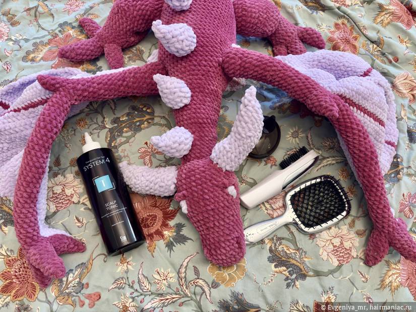 В неё входит массаж кожи головы, лазерная расчёска через день (вот тут я знатно косячу и ленюсь), и нанесения тоника для роста волос.