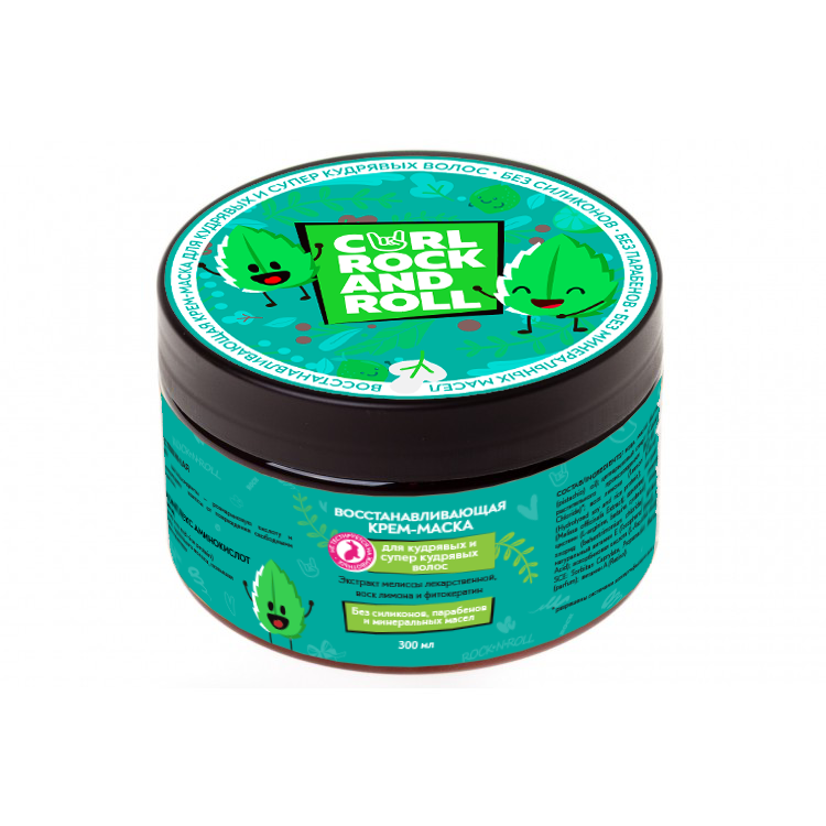 Крем-маска CURL ROCK AND ROLL для интенсивного восстановления содержит в несколько раз больше экстрактов лечебных растений и активных веществ, специально подобранных для особенных потребностей кудрявых волос.