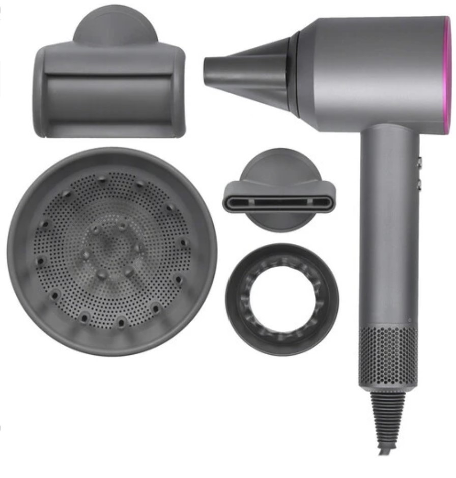 Фен Super Hair Dryer имеет встроенный генератор ионов, который разглаживает пряди и снимает статическое напряжение. Для сушки и укладки кудрявых волос предусмотрена насадка-диффузор. Зафиксировать прическу можно с помощью подачи холодного воздуха.