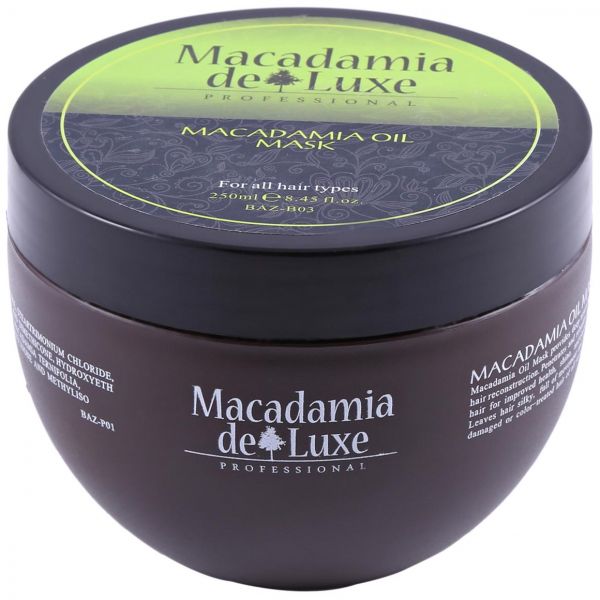 Увлажняющая маска для волос MACADAMIA DE LUXE с маслом Макадамии содержит высокую концентрацию витаминов, натуральных масел и микроэлементов. Интенсивно питает и восстанавливает волосы, придает плотность и выравнивает кутикулу, возвращает естественную эластичность здоровых волос. Придает несравненную мягкость, шелковистость и роскошное сияние, наполняя каждый сантиметр волос силой и красотой самой природы.