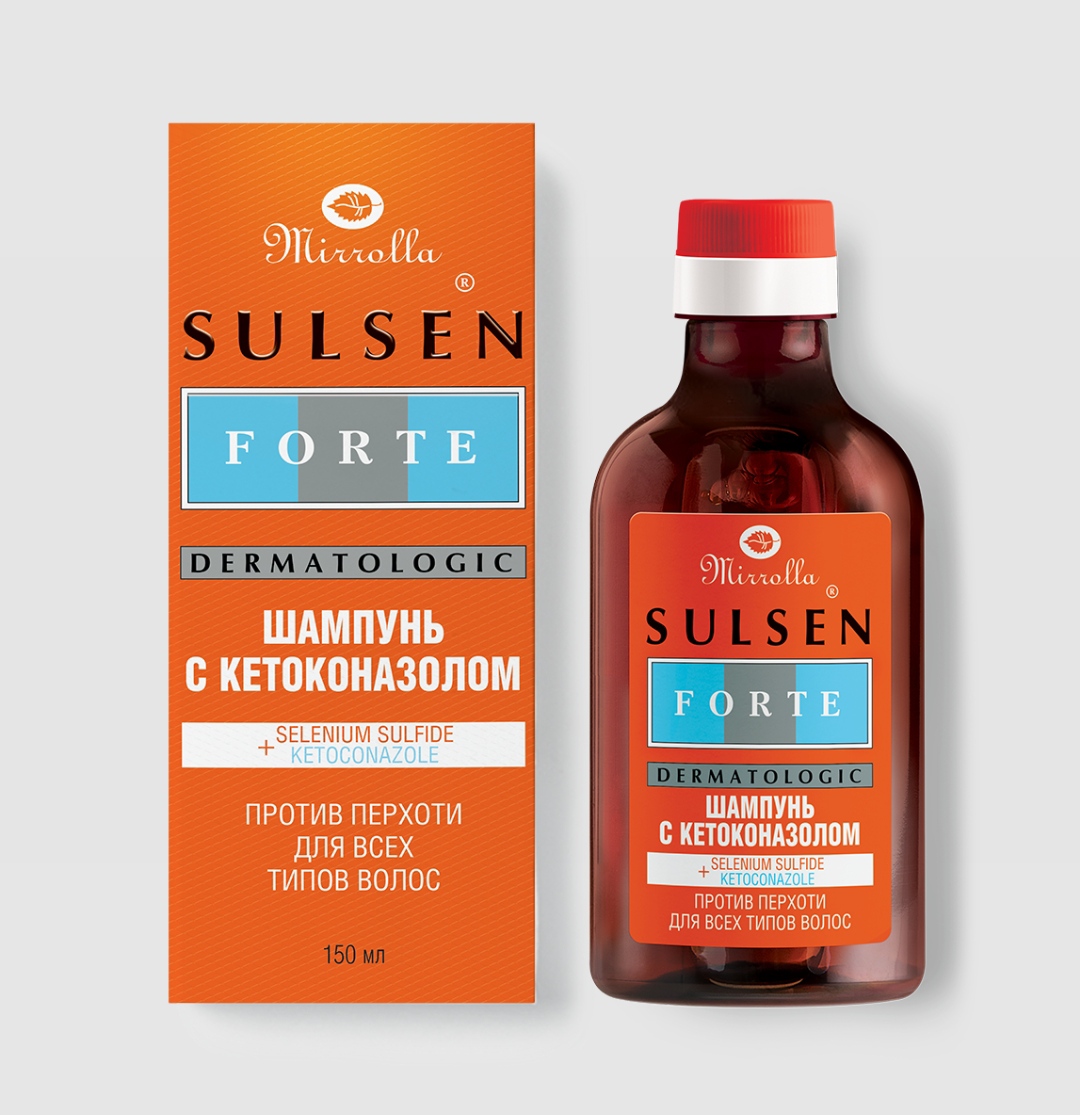 Кетоконазол — один из самых мягких противоперхотных веществ. Помогает бороться с симптомами перхоти, не пересушивая волосы и кожу головы даже при частом использовании средства. Компонент способен сохраняться в верхних слоях эпидермиса, тем самым создавая надежный барьер от повторного появления перхоти. А сульсен участвует в нормализации работы сальных желез, помогая убрать излишнюю жирность или сухость волос.