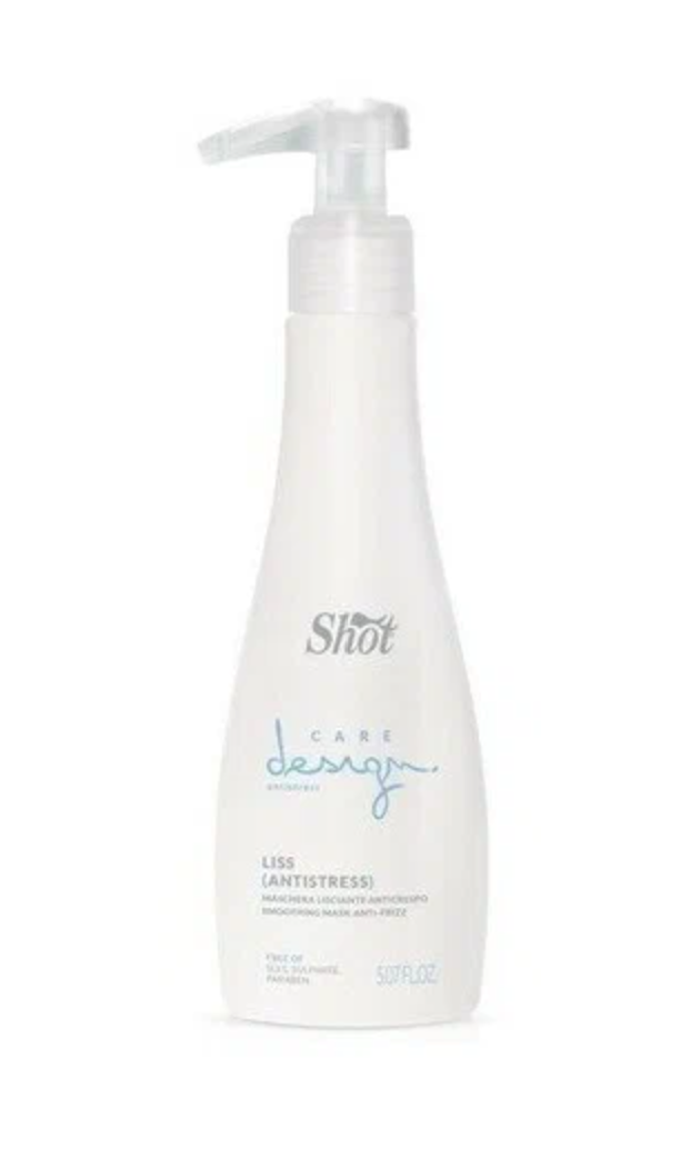 Маска Shot Care Design Antistress Liss сочетает в себе мощное дисциплинирующее действие с защитой от внешних факторов и антистатическим эффектом. Пряди мгновенно разглаживаются, обретают невероятную мягкость и шелковистость на ощупь, и сияющий блеск.