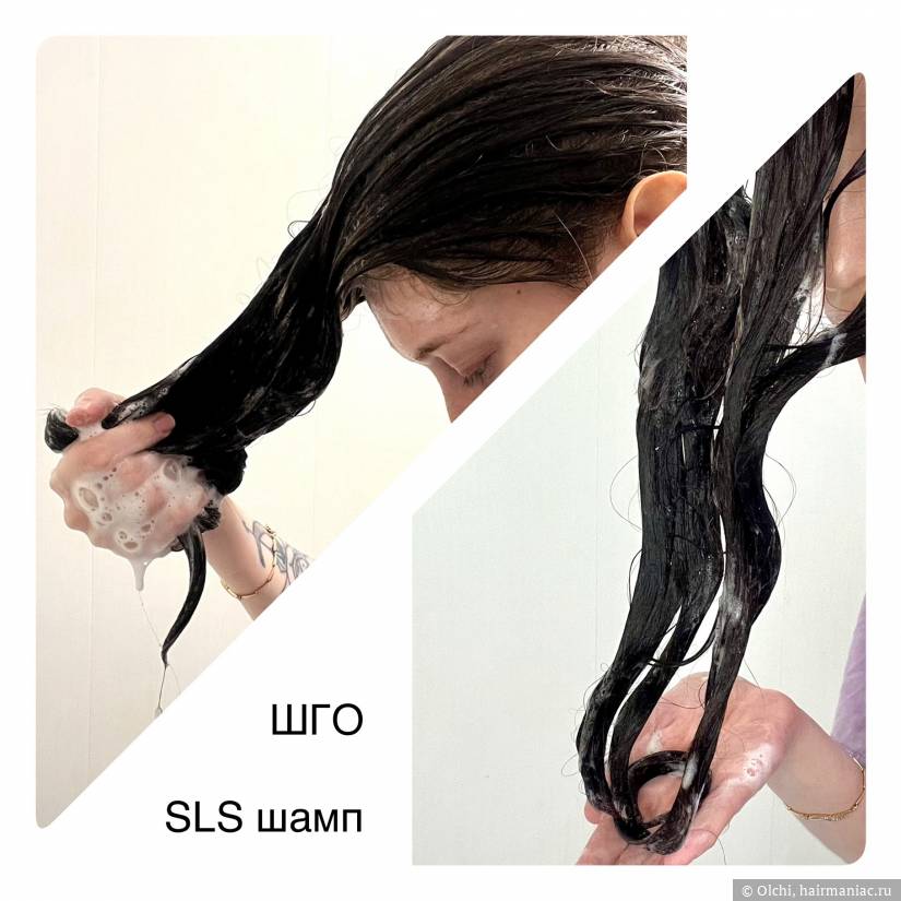 Если используете ШГО (а я здесь использую и рекомендую его), то кожу для начала промываем своим привычным шампунем, и только потом отдельно наносим технический шампунь на полотно. Помним, что подобные средства с pH 7 и выше могут навредить защитному барьеру кожи головы. Мало пены и ощущается склизкость – промываем еще разок.