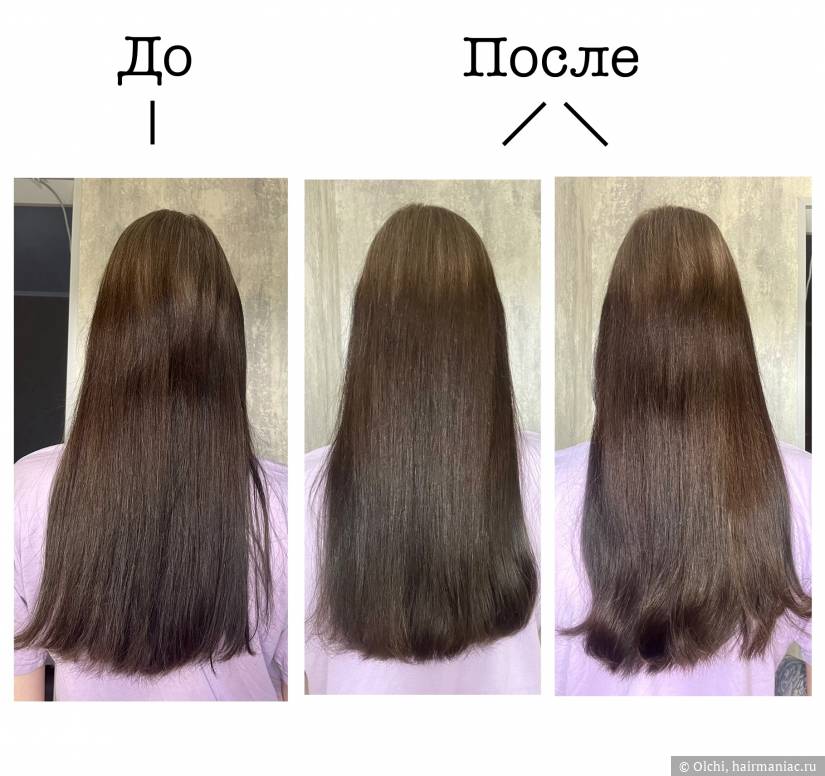 Конечно, визуал после холодного восстановления тоже имеется, но это естественный блеск здоровых и ухоженных волос, ему далеко до специфичного глянца пластика, как после кератина.