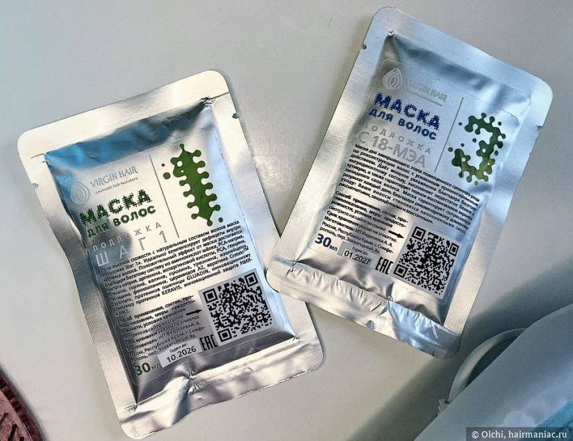 Составы бывают в саше-пробничках, как у меня, или в полноразмерных упаковках. Если волосы не нуждаются в частом интенсивном восстановлении, то можно обходиться сашетками — это и экономно, и удобно.