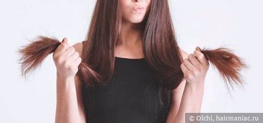 Это знакомые многим раздваивание кончиков и белые точки на них.