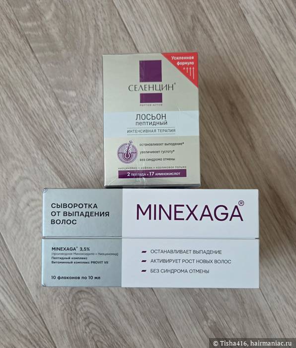 В середине октября аминексил Vichy заменила на Селенцин Minexaga. Это тоже аминексил, но в нем еще добавлены блокаторы дгт. В общем, блокируем теперь и утром и вечером. Это более правильно, так как лосьон "работает" примерно 8 часов, а блокировать дгт желательно 24/7.