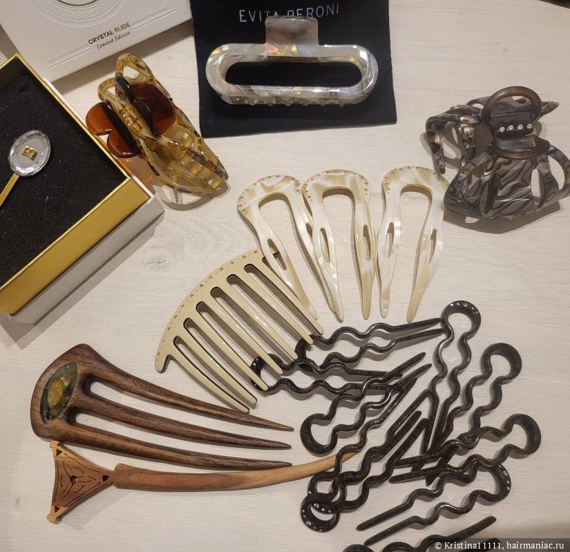Увы, моя заколка devisage уже дышит на ладан, летом она поделилась на 2 части, но мне её бережно починили. Теперь её ношу только дома, 15 лет службы, вот это качество! Kosmart заколка бережная, тоже механизм на резиночке (в коричневых цветах), а evita peroni - сейчас мне как раз, ношу, но вообще тугой механизм и волосы сильно пережимает, не сильно её люблю.