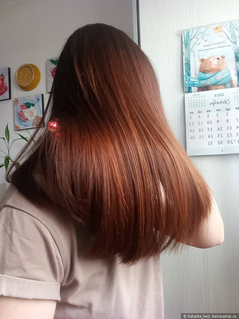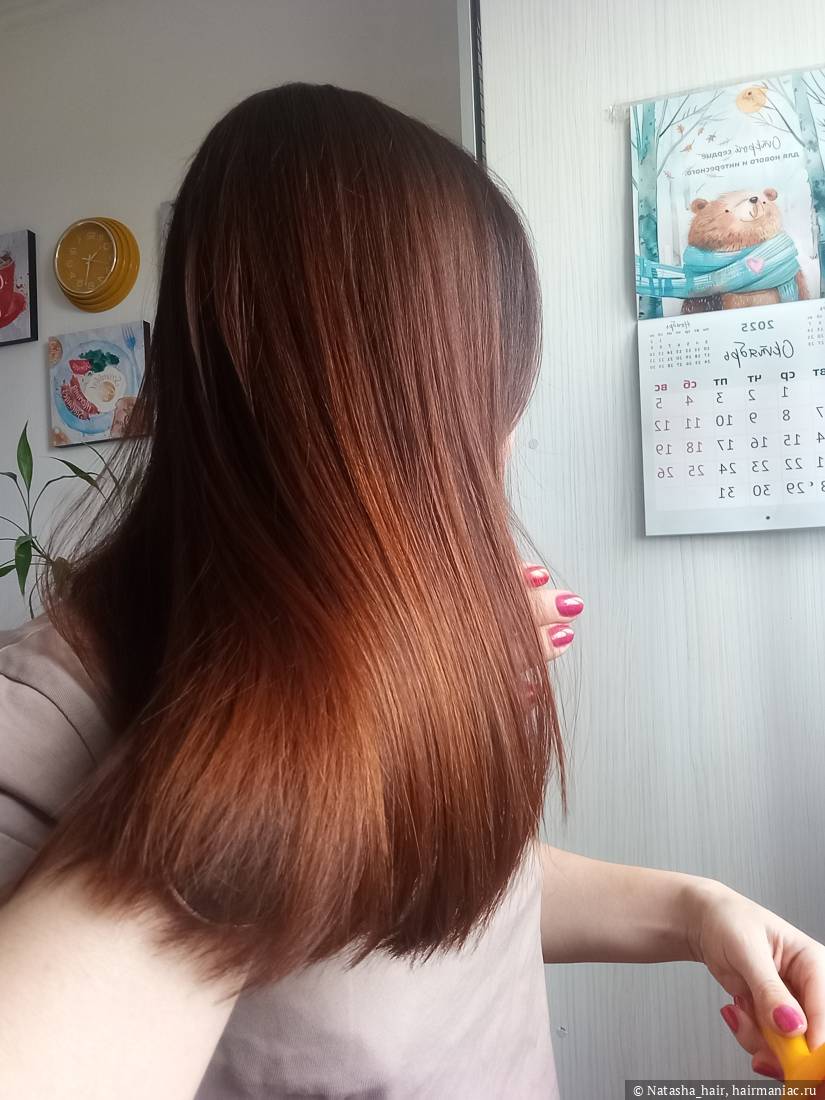 Блеск волос мне понравился, как и качество прядей после окрашивания. Волосы упругие, блестящие, гладкие, не сухие по длине.