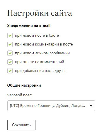 Если вы хотите отписаться от уведомлений, кликните по профилю на главной странице, в открывшемся меню выберите «Настройки сайта» и уберите лишние галочки, затем нажмите на «Сохранить».