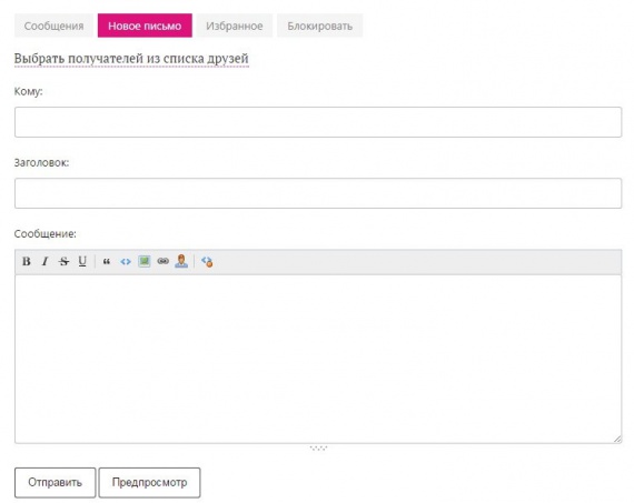 1) Кликните по профилю на главной странице, в открывшемся меню выберите «Сообщения». На странице кликните «Новое письмо». Вы можете выбрать адресата как из списка своих друзей, так и введя его ник на Hairmaniac.