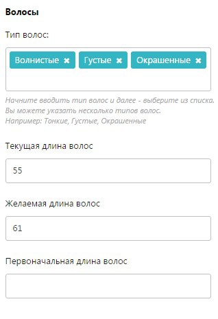 - Далее там же нужно заполнить небольшую анкету и указать тип волос, первоначальную длину и желаемую длину волос. Регулярно измеряя длину волос, вы можете фиксировать ее в графе "Текущая длина волос".
