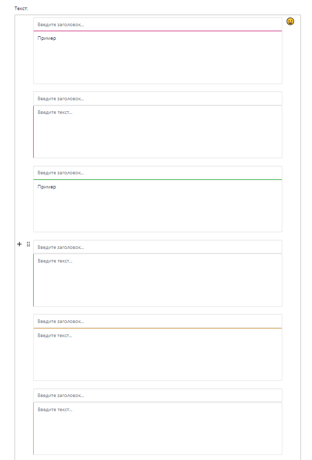 Каждый блок добавляется через плюс: