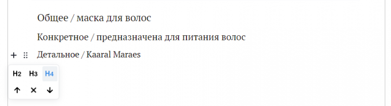 Как выстраивались заголовки в старом редакторе рассказали выше, сейчас повторим, что принцип сохранился. Изменился лишь способ выделения текста. Добавить > Заголовок. Затем добавляете подходящий текст и нажимаете 6 точек (кнопка Настроек функции). И определяете какой уровень заголовка будет соответствовать Вашему тексту. На примере ориентироваться легче: