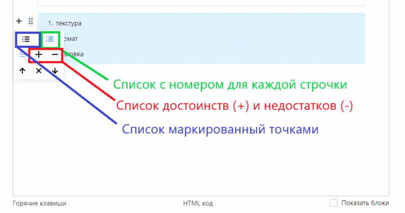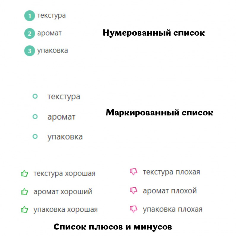 Если же нужен маркированный или формат плюсов/минусов, то нужно нажать 6 точек блока и выбрать подходящий вариант: