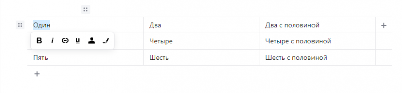 Таблица еще одна из новых функций, которой не было раньше в редакторе. Для этой функции прописаны дополнительные настройки, которые упрощают заполнение и работу со строчками таблицы.