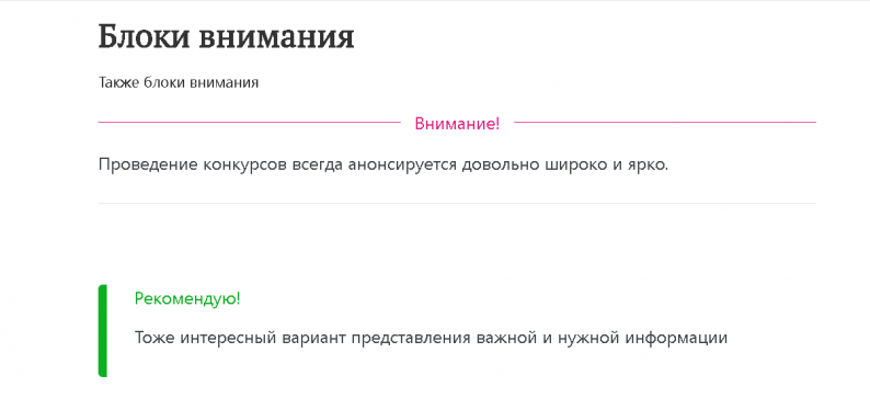 Внимание - это новый тип блоков для акцентов и привлечения внимания читателей.