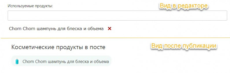 - Внизу опубликованного поста список косметических продуктов теперь воспроизводится как трио из полного наименования средства + его аватара + ссылки на страницу в каталоге.