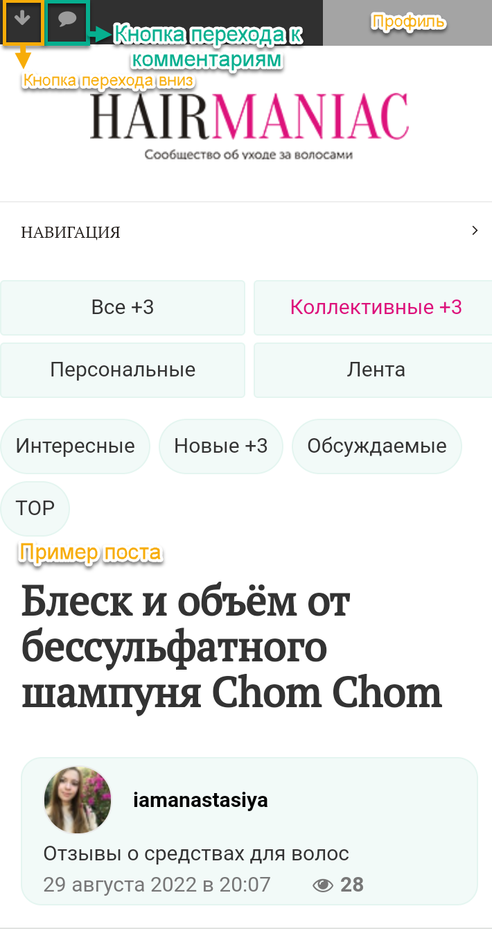 - Для тех, кому удобнее посещать сайт с помощью мобильного телефона, были добавлены кнопки для быстрого перехода к комментариям и вниз поста.