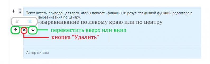 Автором цитаты может быть и автор сообщества, о чем можно сделать специальное упоминание-ссылку. Для этого в строчке "Автор цитаты" нужно добавить автора, выделить текст и нажать кнопку "Пользователь".