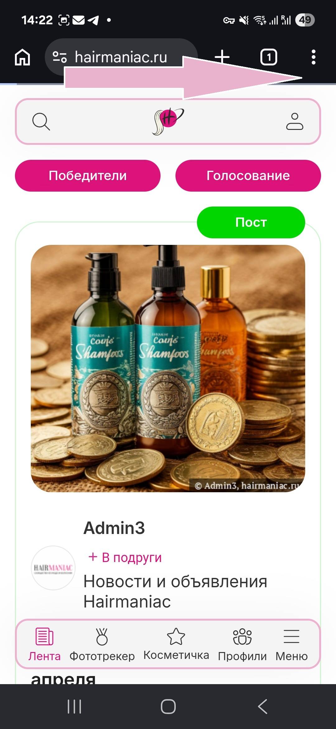 - Заходим на сайт hairmaniac.ru в браузере Safari.