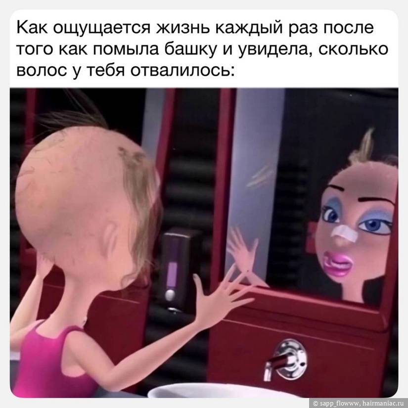 Начиная лечение, я понимала, что голову придётся мыть чаще (и интенсивнее), однако моральное состояние после увиденных клочьев волос в стоке заставляло меня, напротив, делать это реже. «Нервы важнее». К сожалению, спустя время я столкнулась с состоянием, похожим на перхоть (несмотря на использование пилингов) — только это были не чешуйки, а именно скопившиеся «активы».