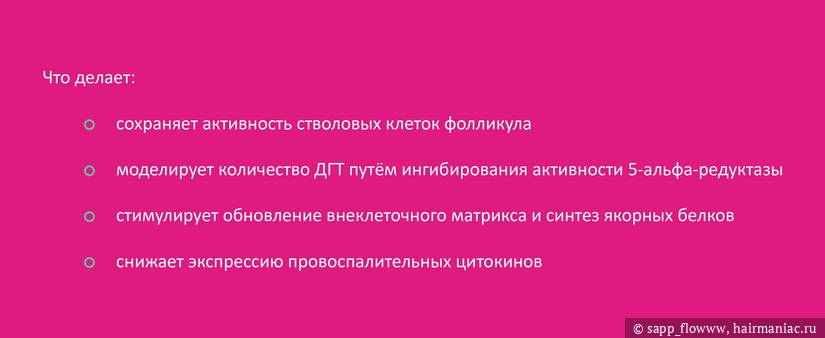 Итак, капиксил. Пептидный комплекс, широко применяющийся в сыворотках для восстановления шевелюры. Используется как при диффузном выпадении, так и в лечении АГА — при несерьёзном проредении на начальных стадиях, либо же в комплексной терапии на более поздних стадиях.