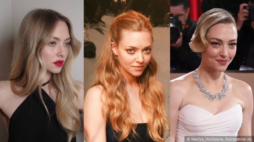 Длинные голливудские локоны в оттенке блонд с прикорневым объемом или без, с активными завитками или подкрученными лишь на кончиках – постоянный выбор артистки. Вот и на церемонии награждений Аманда хоть и с низким гладким пучком, но все же с волнистым локоном по виску.
