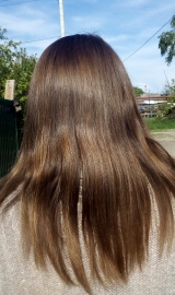 23.05.18г.ВСЁ мелирование отрасло и отвалилось. Длина волос от линии роста волос на лбу 54см.