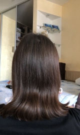 Отращиваю удлиненное каре и прямую челку. Волосы дают волну ближе кончикам. Обхват низкого хвоста 6 см. Жирная кожа головы.