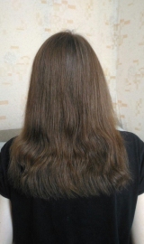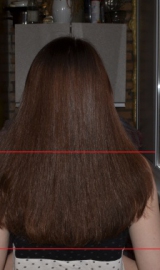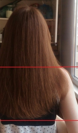 5.03.16 Длина 34 см. Концы сухие, но волосы стали немного помягче после более тщательного ухода.