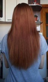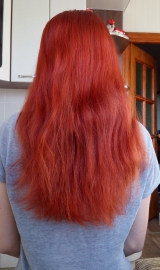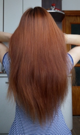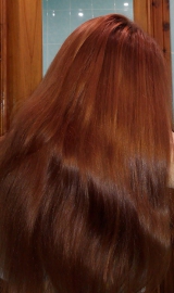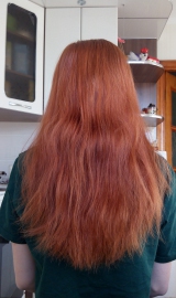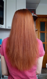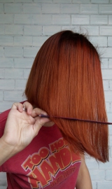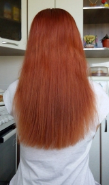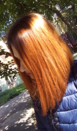 Волосы окрашены фармавитой 7.64 на 3% оксиде со вспышкой , без стрижки 6 месяцев
