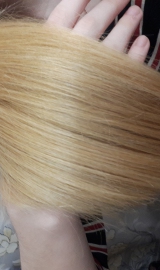 Тип волос:1/2 волос окрашена, нормальные, кожа головы нормальная, есть ломкость, но не много(у окрашенных волос это часто встречается), сечка минимальная.Обхват хвоста:10 см, охват концов:5 см.