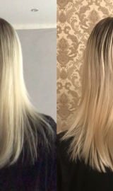 С мая 2020 года полностью перешла с порошка на окрашивание спец блондом