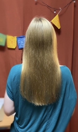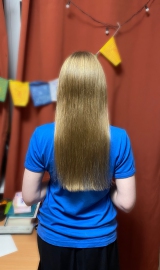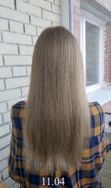 5.12.19 стрижка. Длина от лба — 60 см. Обхват хвостика — 9 см.
