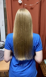 17.08.20 Без стрижки 3 месяца. Длина от лба - 67 см. Обхват хвостика - 7 см.