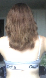 Сострижены осветленные концы. Волосы суховаты и на вид сзади как мочалка. 50см
