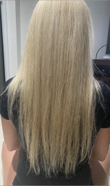 Мечтаю отрастить густой срез на окрашенных в блонд волосах.