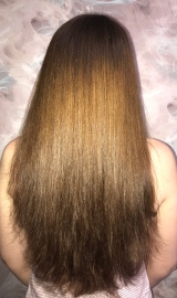 На данный момент 80% родных натуральных волос и 20% окрашенных ранее:) Отращиваю свой цвет.