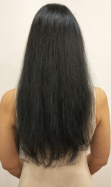 Сократилось выпадение, отсутствуют посеченые концы, волосы наполненные. Цель - загущение среза.
