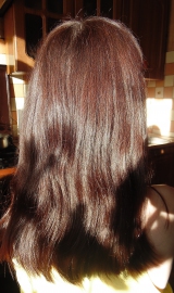 окрашивание иранской хной, без вспышки. волосы выглядят абсолютно чёрными о_о