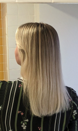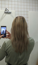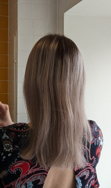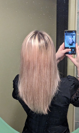 Видно неудачное окрашивание с рыже-розовой полосой посередине. 1.5 месяца спустя