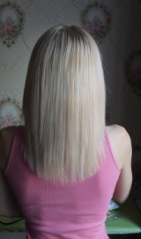 весна 2016 год, волосы после наращивания,видны обрубки, парикмахер постаралась)