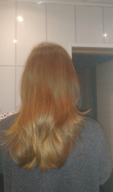 Начало пути. На нескольких прядях на концах след былых окрасок. И почему со вспышкой я рыжая....?