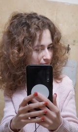 Всем привет, я Катя! Учусь понимать свои кудрявые волосы. Кудри тонкие, очень капризные; зависят от воды и влажности воздуха. Полтора года назад отрезала 20 см «сухостоя», теперь стараюсь найти с волосами общий язык