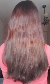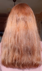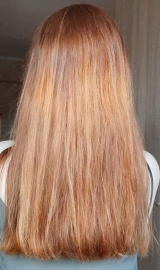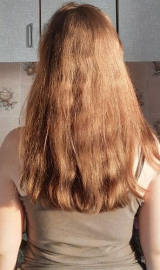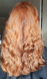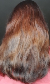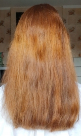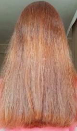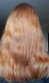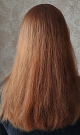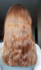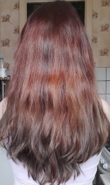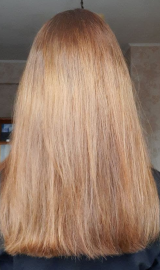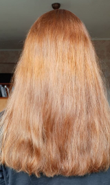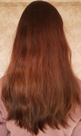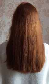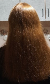 В 2019 г осветлила в несколько этапов хну и закрасила краской 7.1 в тон натуральному цвету. Основная длина волос немного повреждена до сих пор.