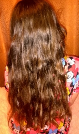 Волосы густые, длинные, средней толщины, вьющиеся. Неокрашенные.