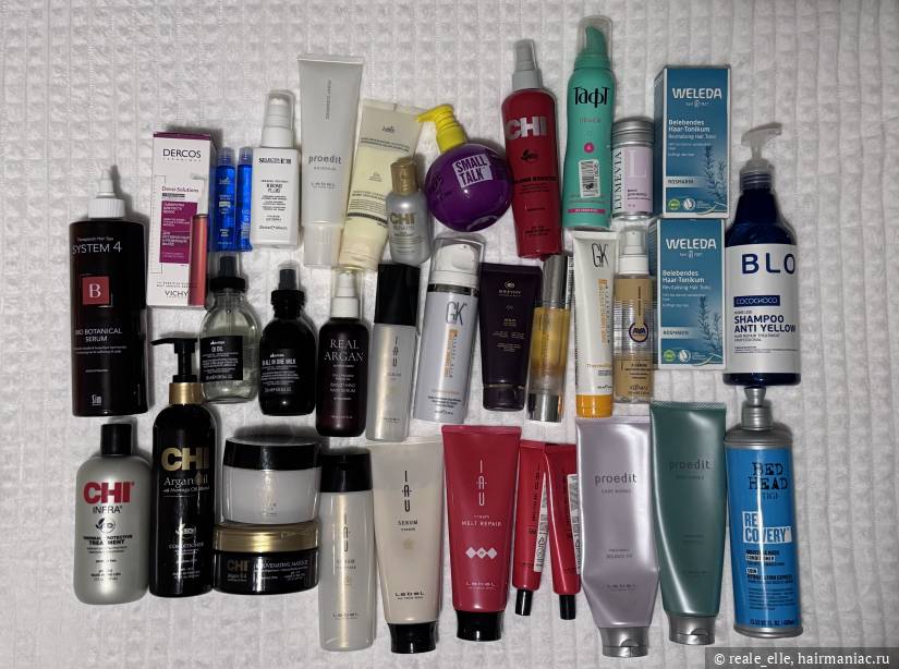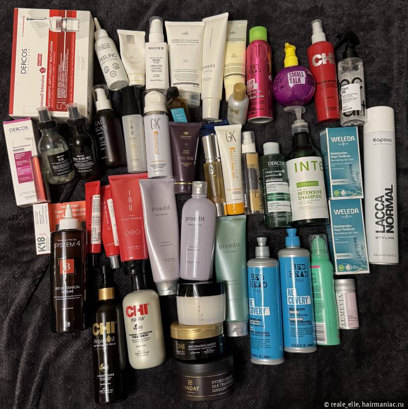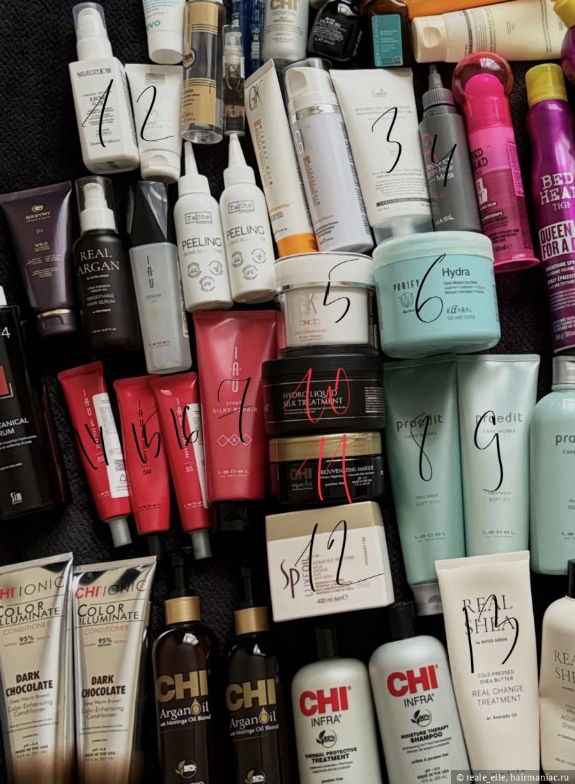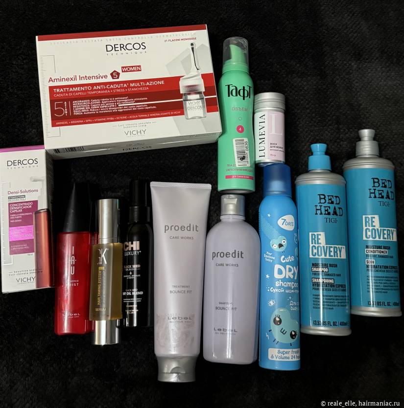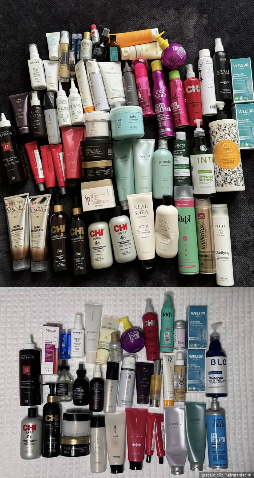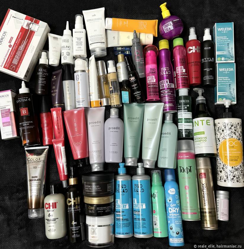 Плюс позиции для укладок (лаки, спреи), сыворотки для роста волос я не стала фотографировать отдельно, просто посчитаем по фото + 2 оттеночных кондиционера чи + 2 филлера ладор.