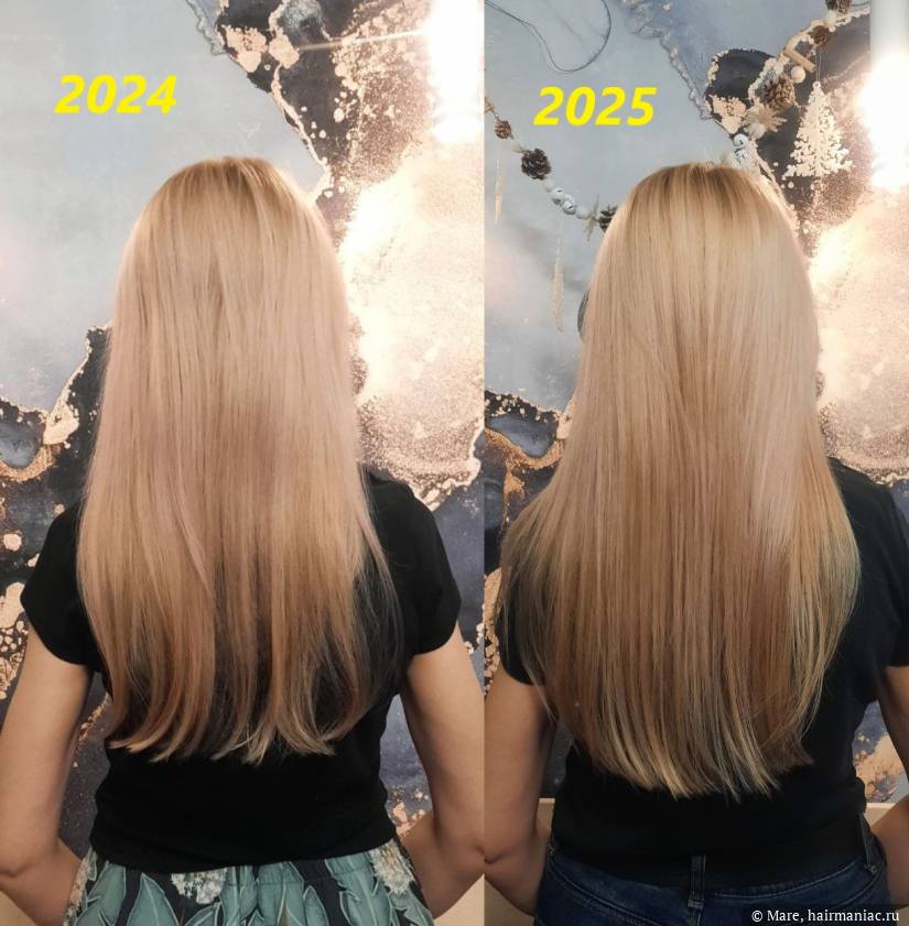 Интереса ради я сделала коллаж фото состояния волос в конце 2024 (после традиционной предновогодней стрижки) и сейчас (т.е. после предновогодней стрижки 2025).